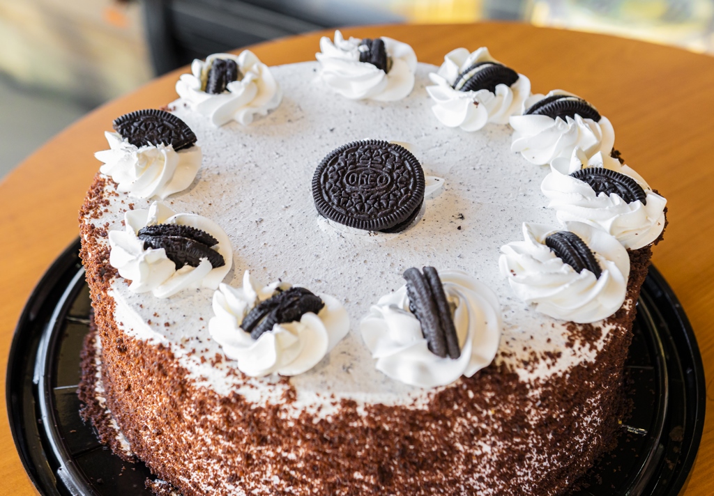 Esponjoso pastel de chocolate, ligeramente bañado en jarabe de chocolate con trocitos de galleta oreo®, cubierto en una rica crema batida de oreo y decorado con miga de chocolate y galletas oreo®.